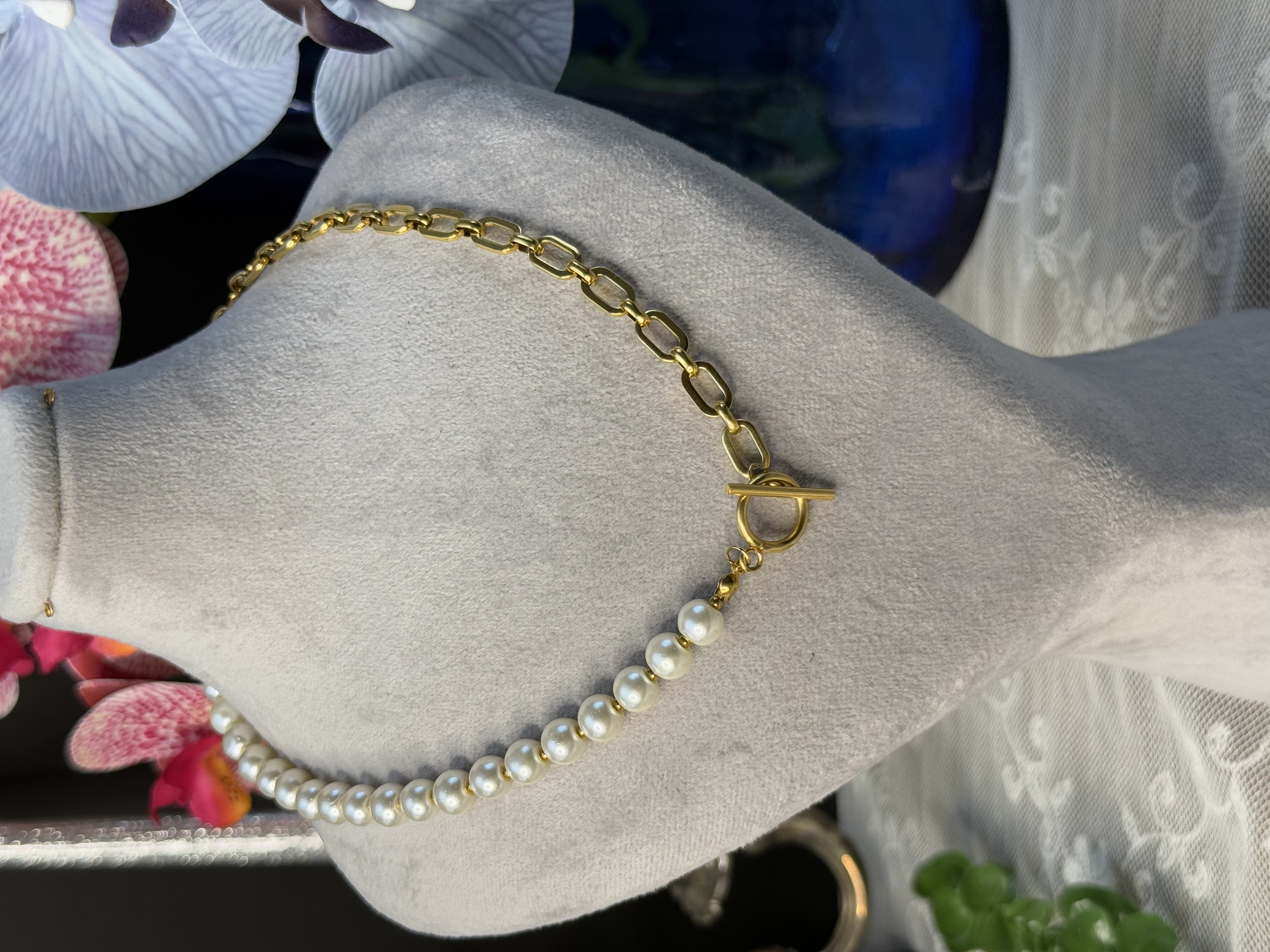 گردنبند زنانه نصف مرواریدی و نصف زنجیر