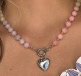 گردنبند زنانه سنگ کوارتز رنگی با آویز قلب رزین