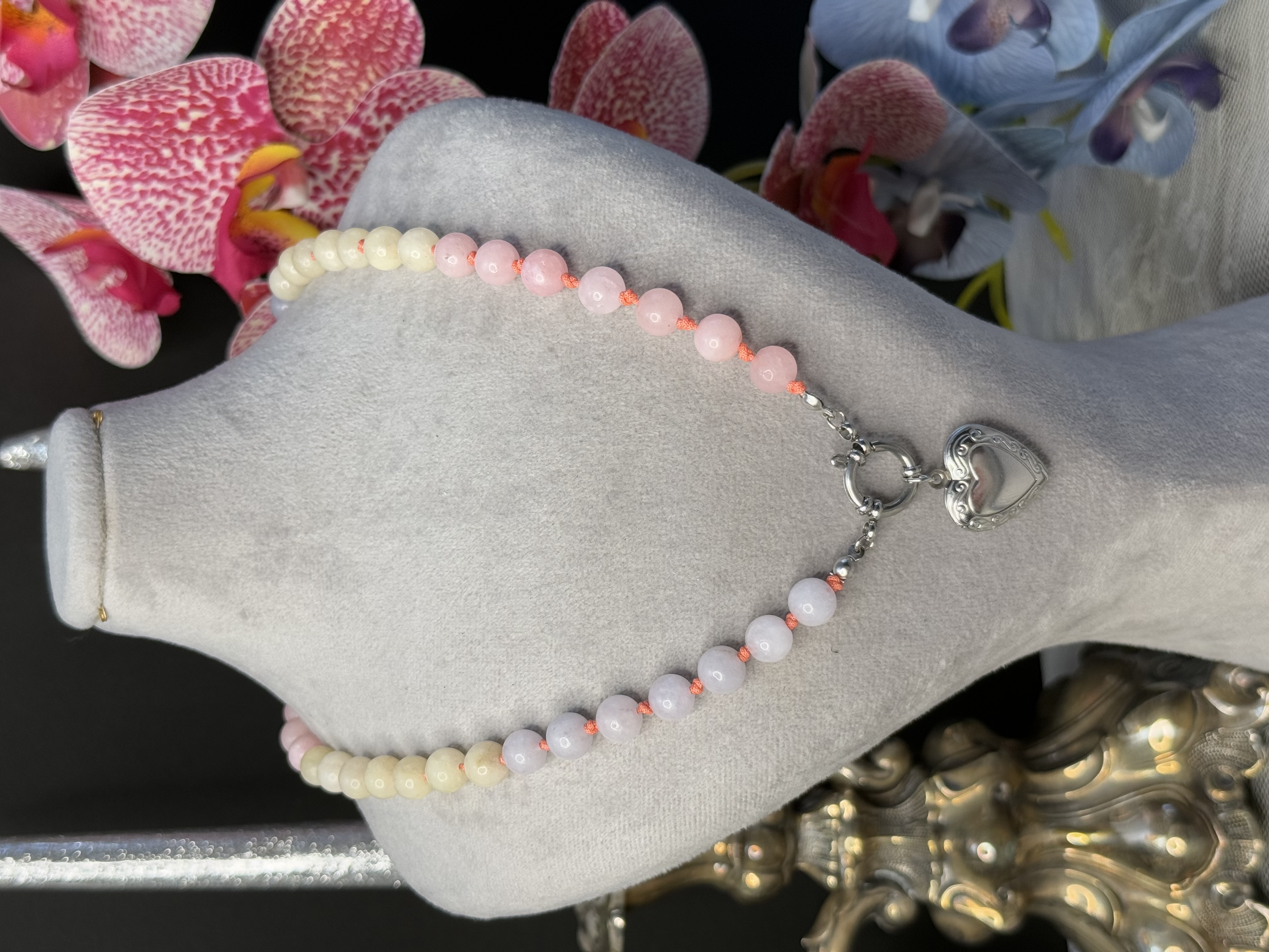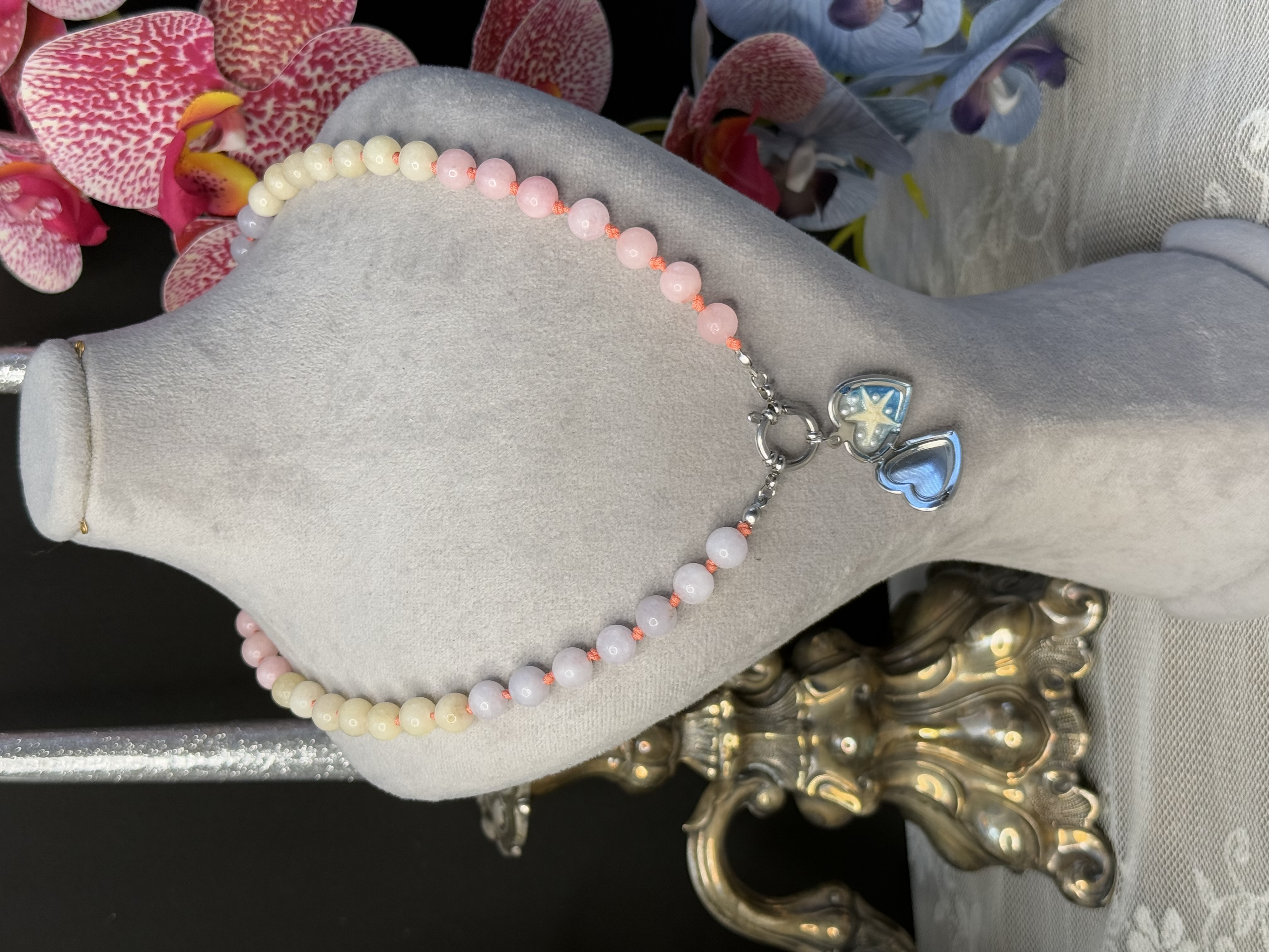 گردنبند زنانه سنگ کوارتز رنگی با آویز قلب رزین