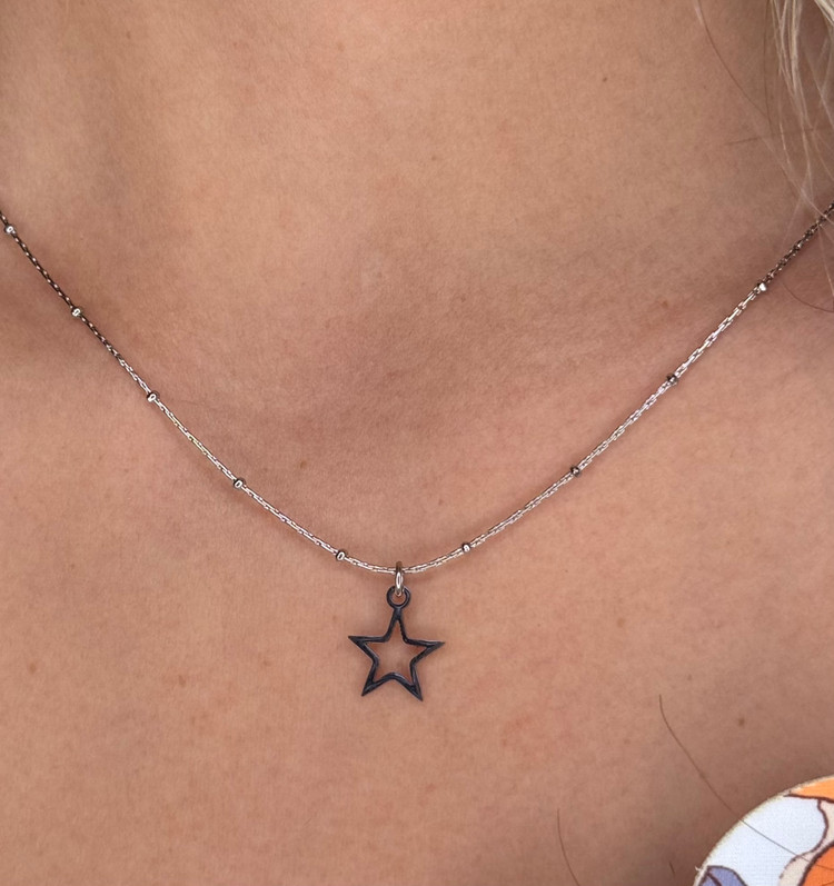 گردنبند زنانه زنجیر توپی نقره ای با پلاک ستاره کوچک استیل