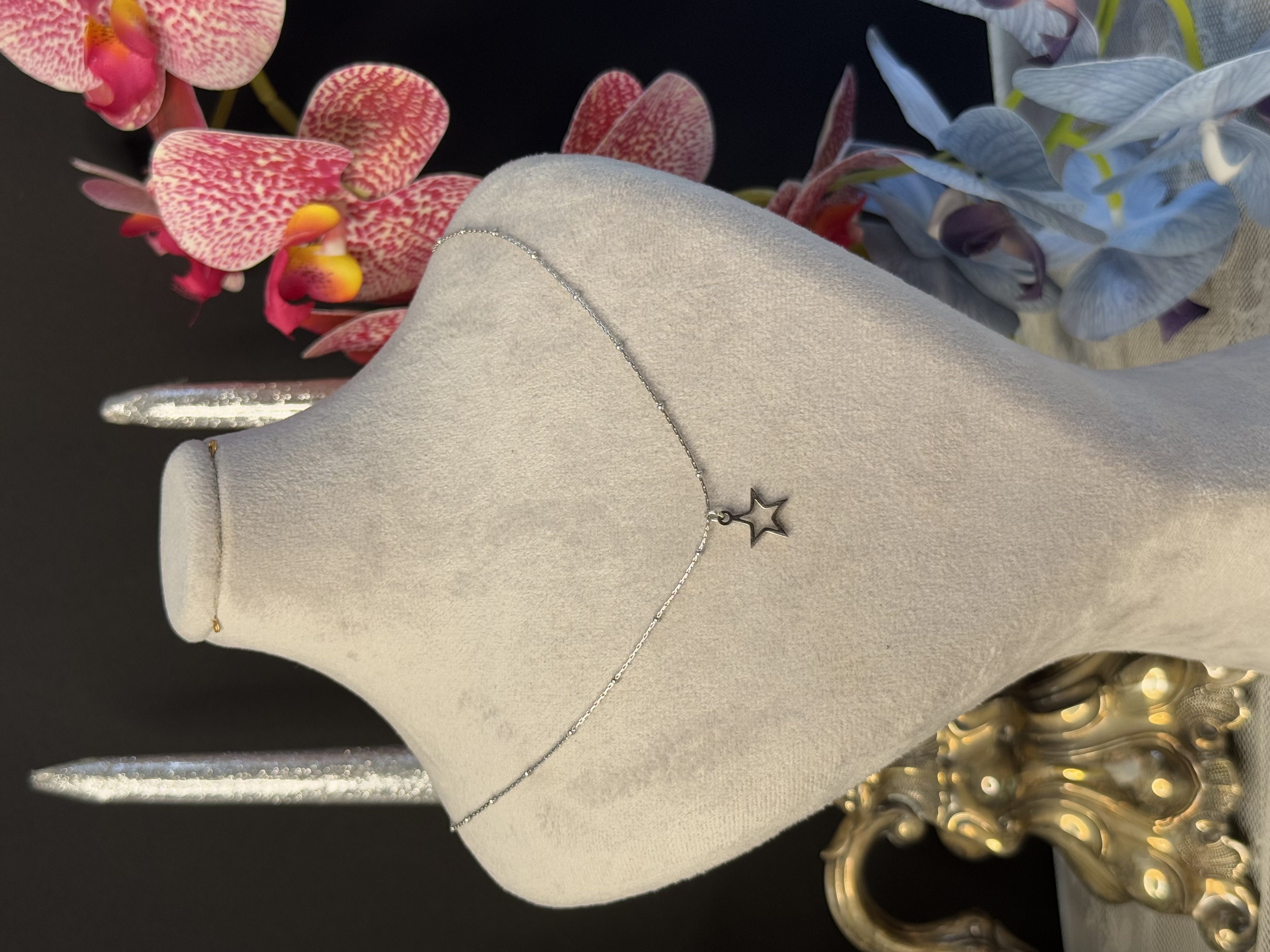 گردنبند زنانه زنجیر توپی نقره ای با پلاک ستاره کوچک استیل