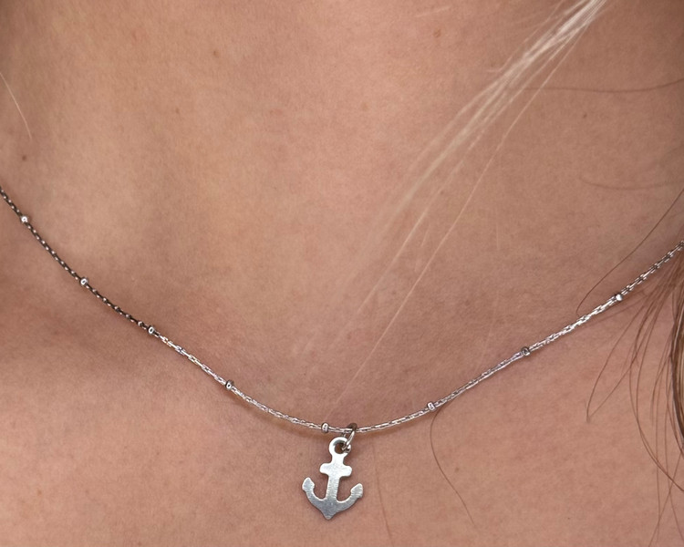 گردنبند زنانه زنجیر توپی با پلاک لنگر استیل