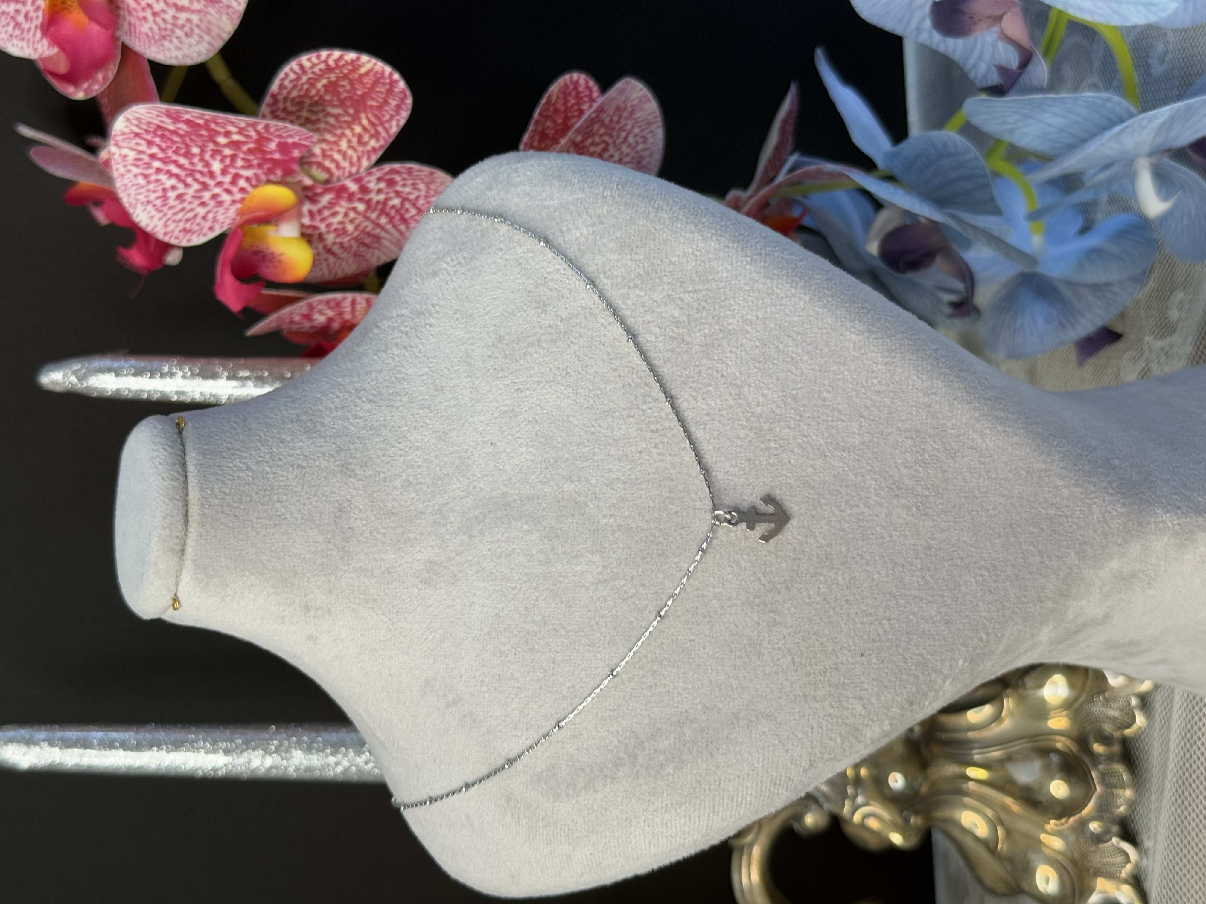 گردنبند زنانه زنجیر توپی با پلاک لنگر استیل