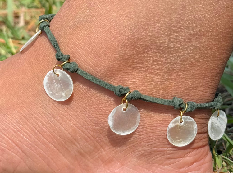 - آویز صدف طبیعی که حس لطافت و اصالت را به پابند اضافه میکند.