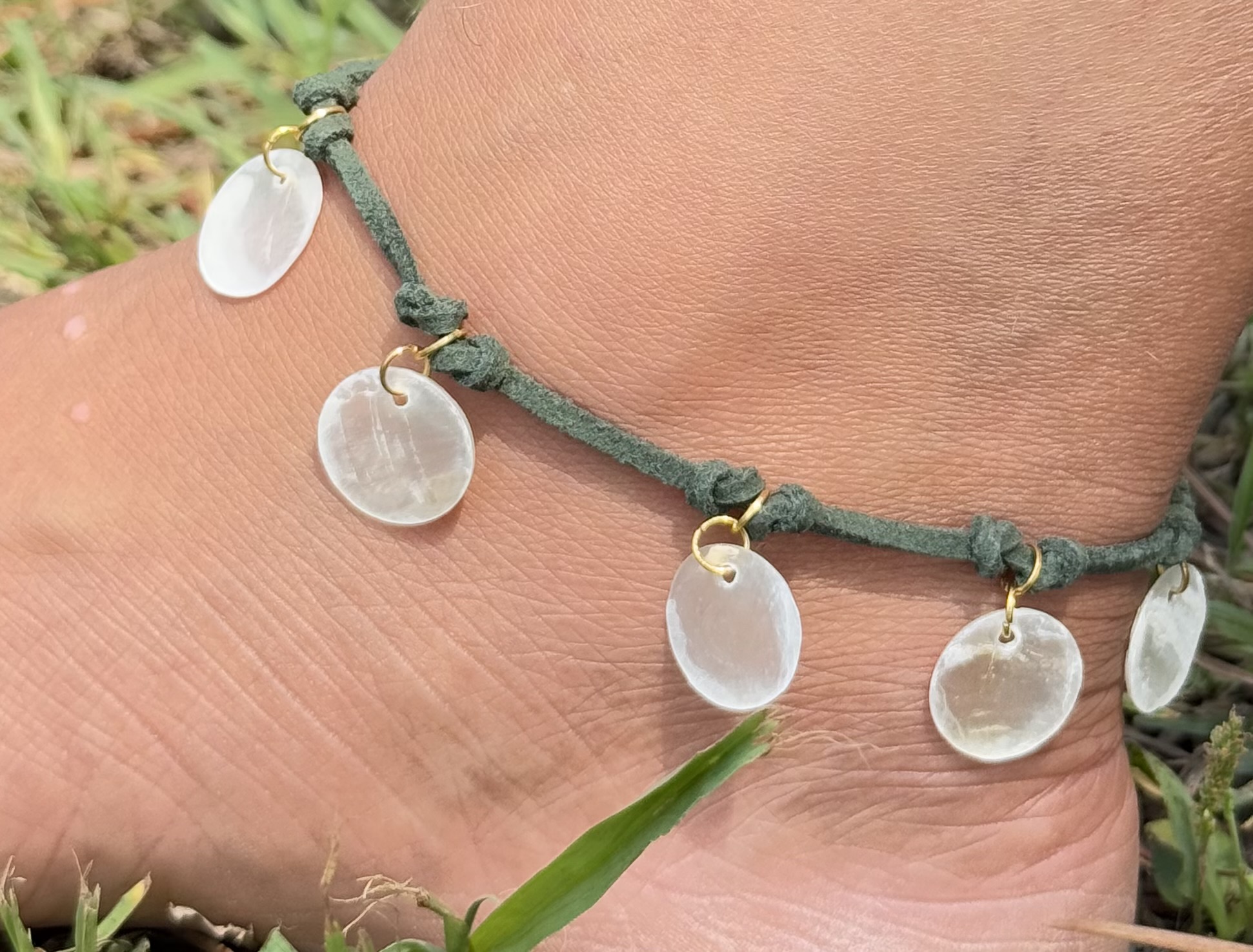 - آویز صدف طبیعی که حس لطافت و اصالت را به پابند اضافه میکند.