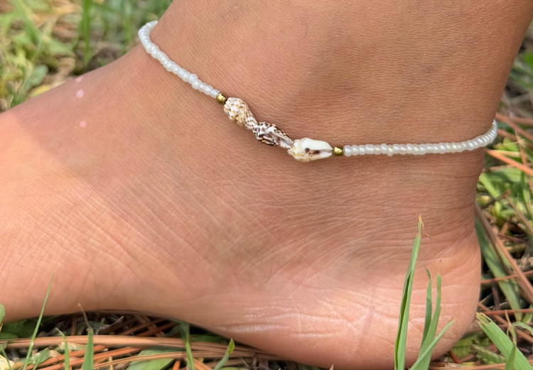 پا بند زنانه منجوق کرم و صدف پلنگی