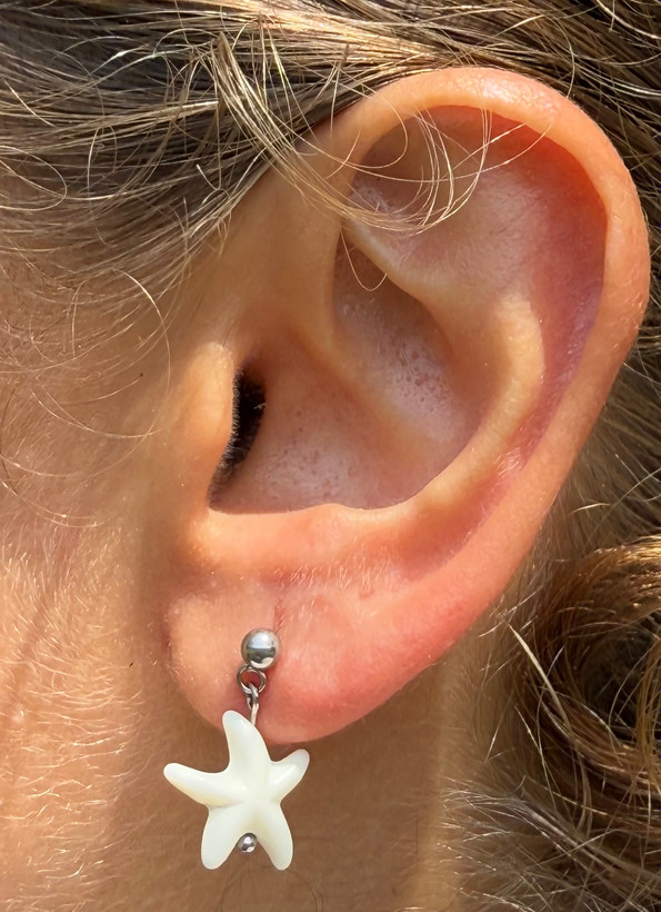ستاره دریایی و لاکپشت این گوشواره از صدف طبیعی ساخته شدهاند که جلوهای درخشان و خاص ایجاد میکنند.