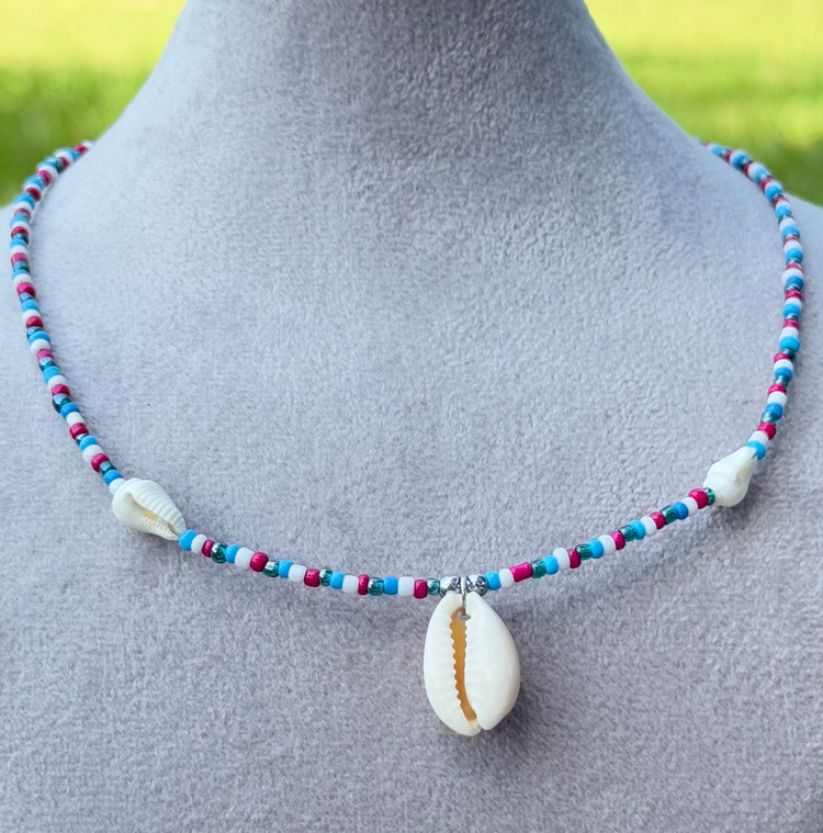 گردنبند زنانه منجوق رنگی ۳ صدف تک صدف بزرگ