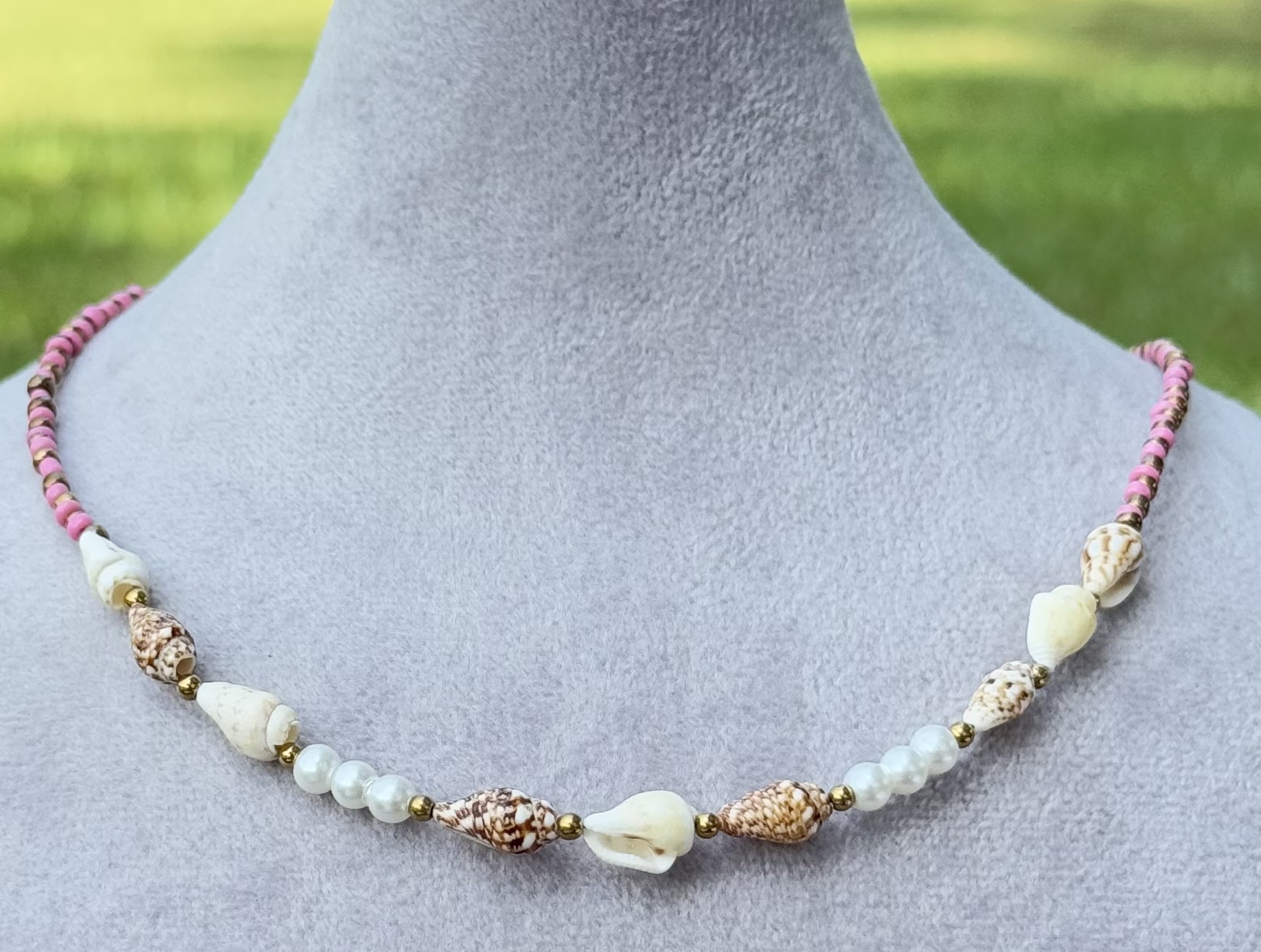 صدف پلنگی کاملاً طبیعی است و با دقت برای حفظ زیبایی و بافت خود انتخاب شده است. قفل و اتصالات گردنبند از استیل ضد زنگ و ضد حساسیت ساخته شدهاند تا دوام و مقاومت بالایی در برابر تغییر رنگ داشته باشند.