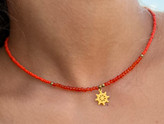 گردنبند زنانه منجوق کریستال نارنجی با پلاک ملوان