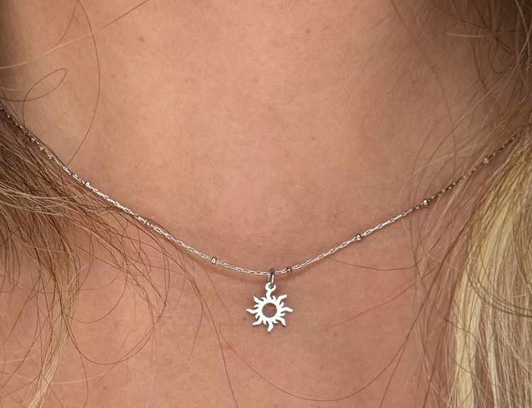 گردنبند زنانه زنجیر توپی نقره ای با پلاک خورشید استیل کوچک