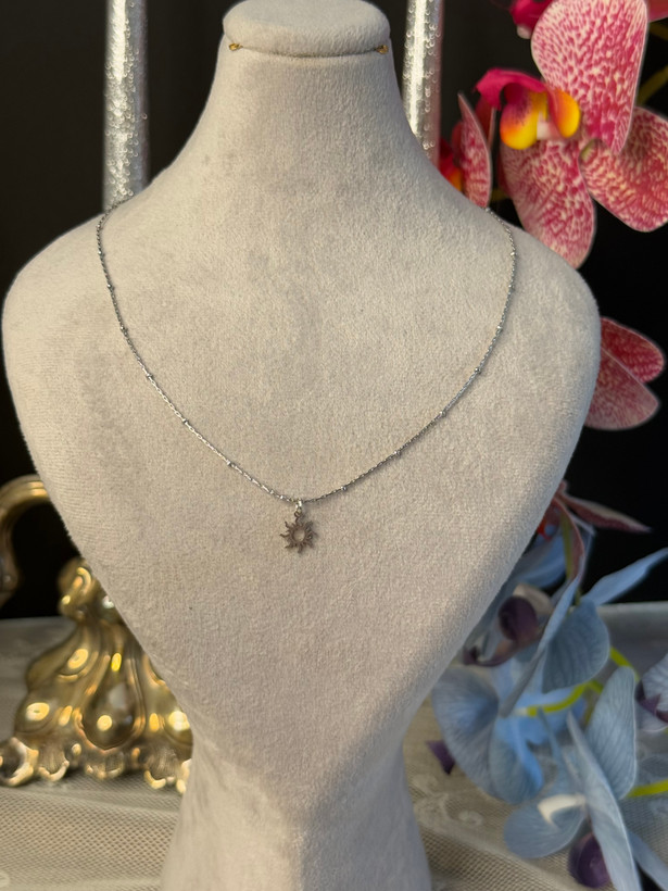 پلاک خورشید از استیل ضد زنگ و ضد حساسیت ساخته شده و دوام بالایی در برابر تغییر رنگ دارد. زنجیر توپی باکیفیت و مقاوم است و گردنبند دستساز، جلوهای منحصربهفرد به شما میبخشد.