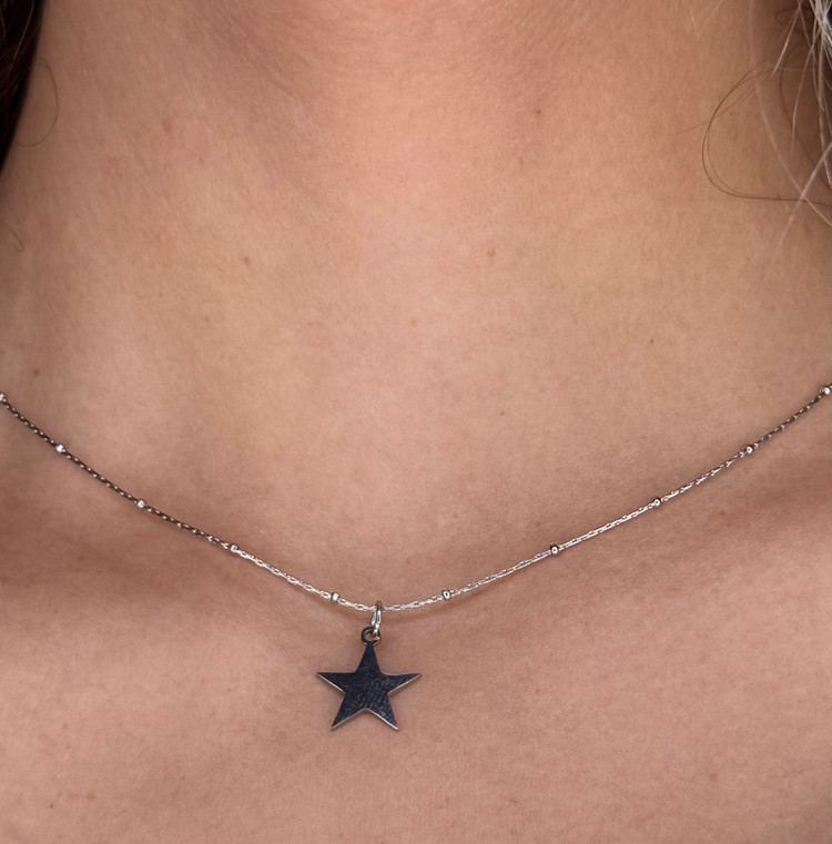 پلاک ستاره بزرگ از استیل ضد زنگ و ضد حساسیت ساخته شده و دوام بالایی در برابر تغییر رنگ دارد. زنجیر توپی نقرهای باکیفیت و مقاوم است و طراحی دستساز گردنبند، جلوهای منحصربهفرد به آن بخشیده است.