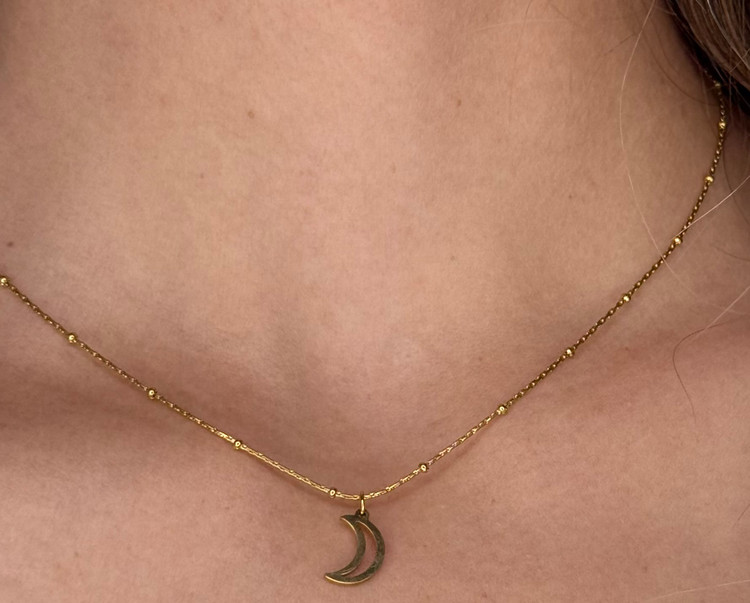 گردنبند زنانه زنجیر توپی طلایی با پلاک ماه استیل
