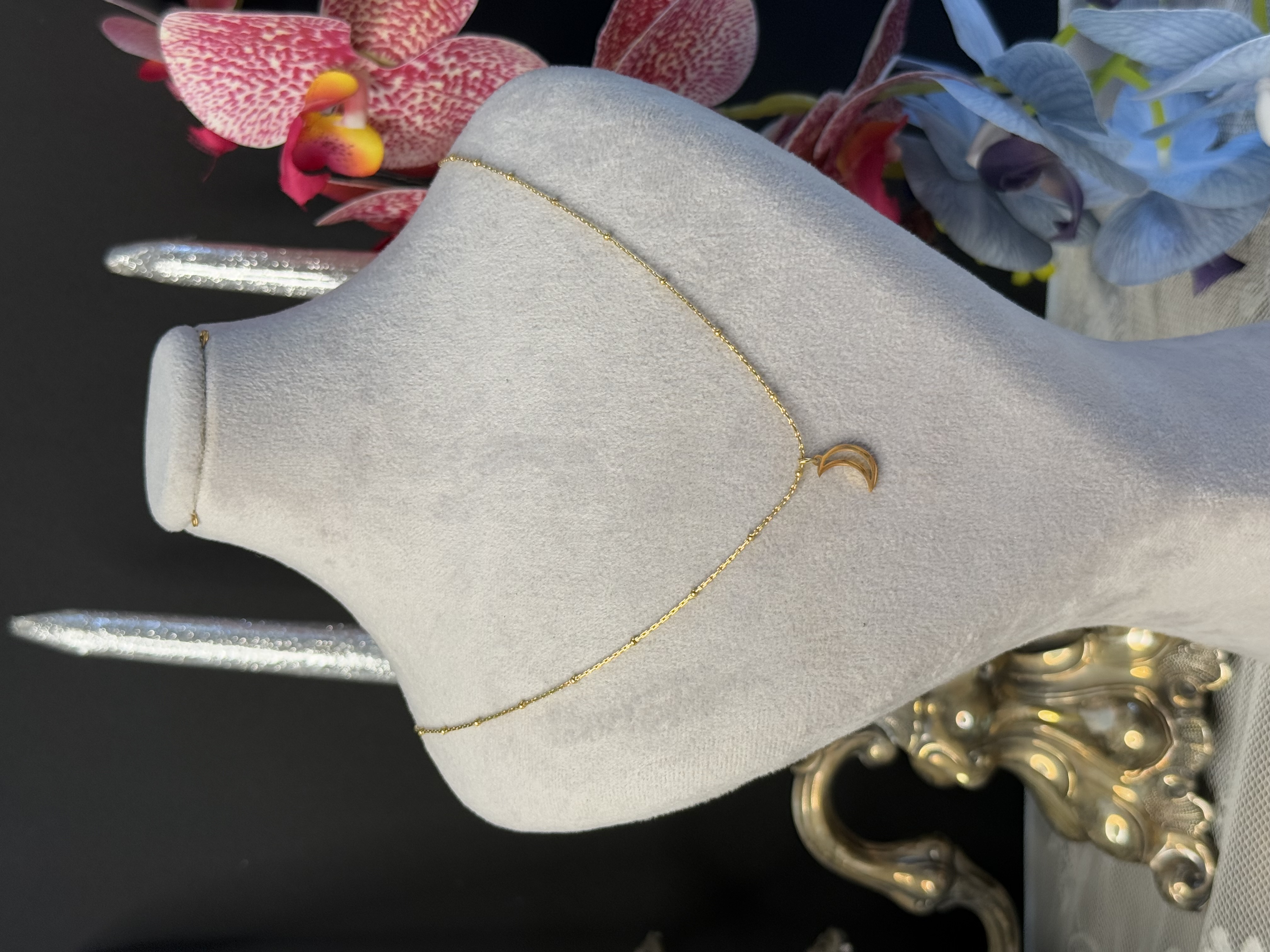گردنبند زنانه زنجیر توپی طلایی با پلاک ماه استیل