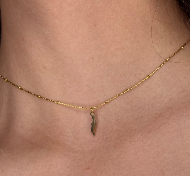 گردنبند زنانه زنجیر توپی طلایی با پلاک پر استیل