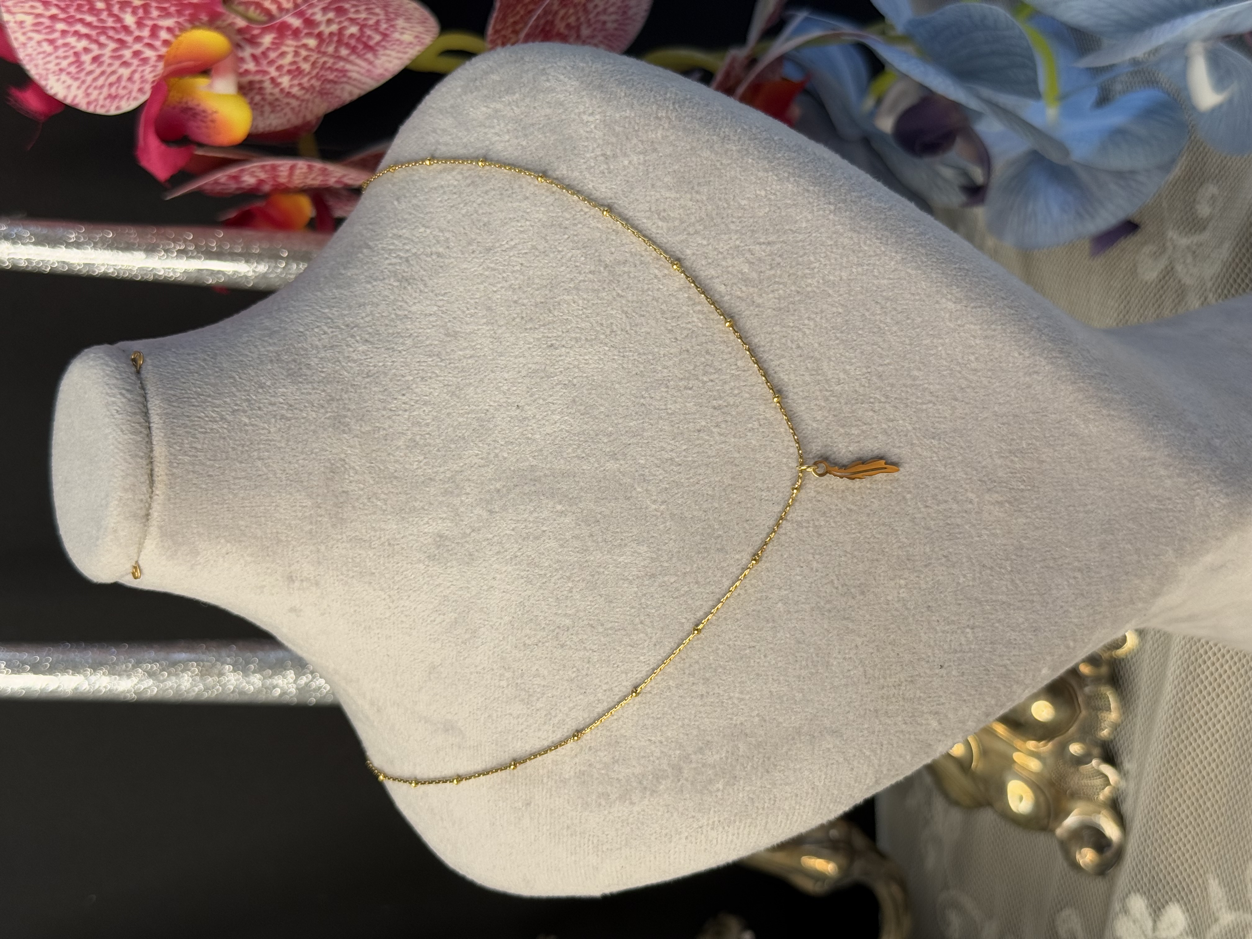 گردنبند زنانه زنجیر توپی طلایی با پلاک پر استیل